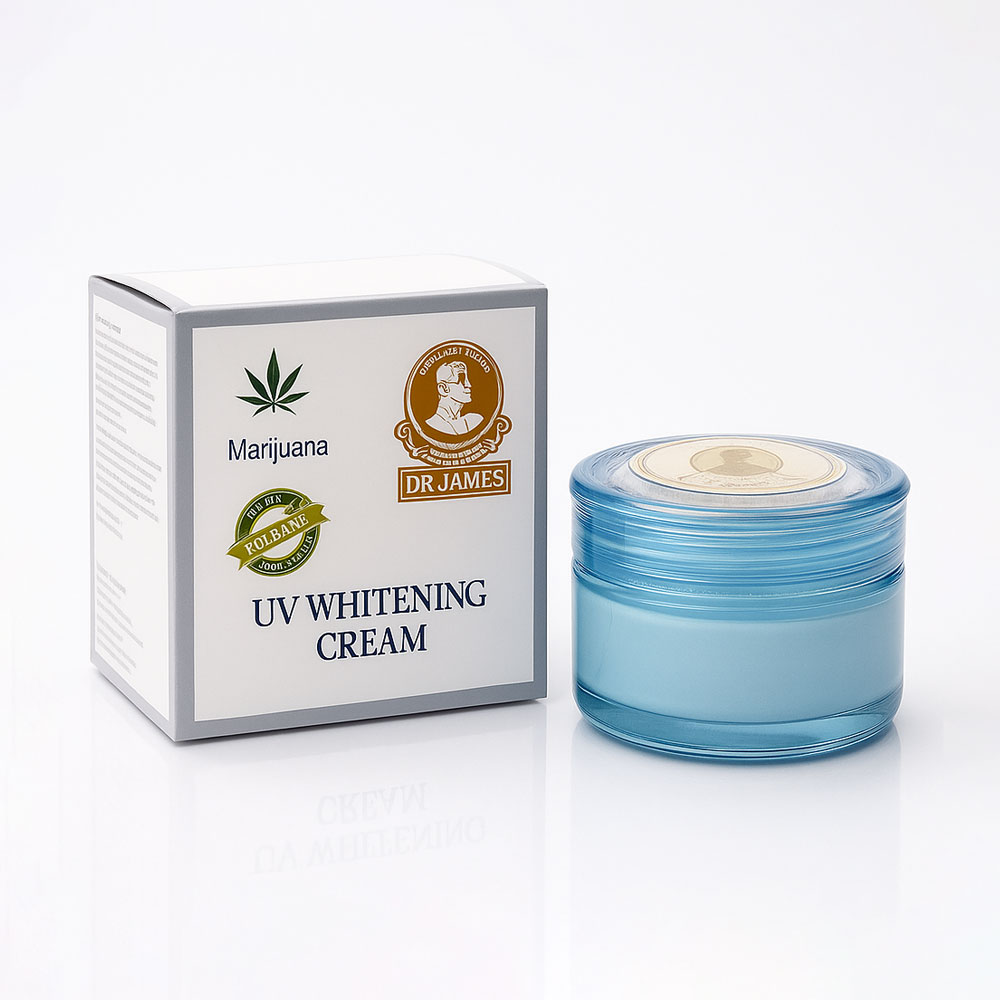Dr. James UV Whitening Cream is a powerful blend of skin-whitening agents and UV protection that helps lighten skin tone, fade dark spots, and shield against harmful sun rays. It works to prevent pigmentation, sunburn, and premature aging, leaving your skin bright, smooth, and radiant.